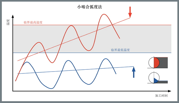 為銑削加工計算的補償因子指出了多種途徑來改變與刀具嚙合量有關的切削參數(shù),從而保持所需的加工溫度。如果溫度過低,則無法使刀具材料達到最大的韌性,同時還可能會形成積屑瘤(積屑瘤是導致切削刃斷裂或微崩的情況)。如果溫度過高,則會加快切削刃磨損或刀具變形。通過參數(shù)調(diào)整進行補償可以平衡熱負荷與機械負荷,優(yōu)化刀具壽命和生產(chǎn)率。